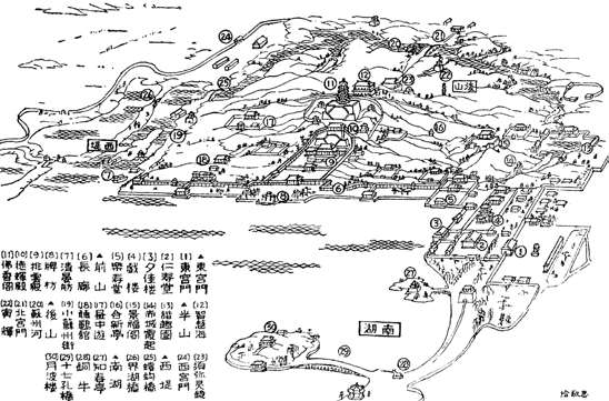 前山湖岸全部是光绪十四年(一八八八年)所重建。那时西太后那拉氏专政,为自己做寿,竟挪用了海军造船费来修建,改名颐和园。