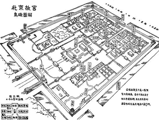 除去这些“宫”与“殿”之外,紫禁城内还有许多服务单位,如上驷院、御膳房和各种库房及值班守卫之处。但威名煊赫的“南书房”和“军机处”等宰相大臣办公的地方,实际上只是乾清门旁边几间廊庑房舍。军机处还不如上驷院里一排马厩!封建帝王残酷地驱役劳动人民为他建造宫殿,养尊处优,享乐排场无所不至,而即使是对待他的军机大臣也仍如奴隶。这类事实可由故宫的建筑和布局反映出来。紫禁城全部建筑也就是最丰富的历史材料。