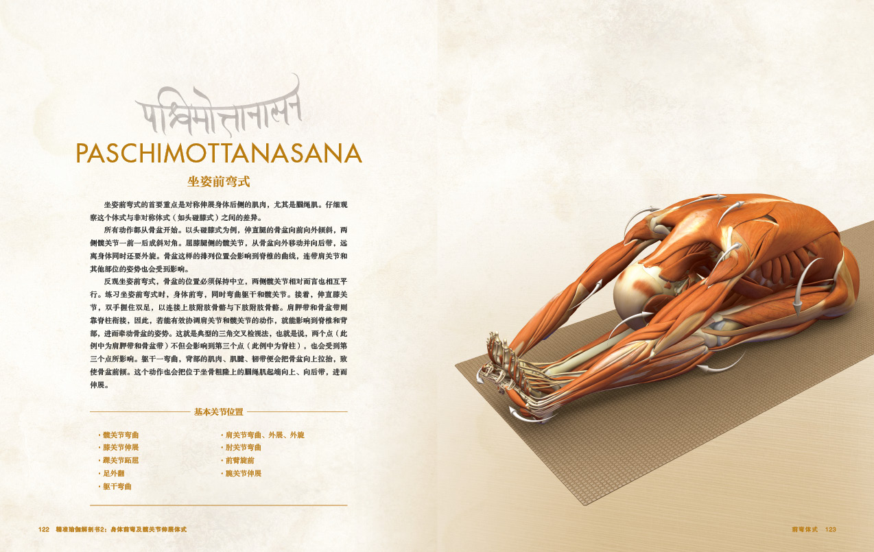 练习瑜伽就像穿越一道道大门,每开启一扇门,你就会发现体式法的全新可能。开启第一道门的钥匙,是要理解各个体式的关节摆位。我们一旦认识了关节摆位,自然懂得判断哪些肌肉调控体式的外观,以及哪些肌肉被伸展开来。启动正确的肌肉是关节处在正位的不二法门,我们通常从原动肌(prime mover)开始。原动肌群一旦启动,骨骼便随之处于正位。深化体式法的要领在于善用我们的生理学知识,以拉长各个体式所延展的肌群。若能掌握以上重点,姿势自然到位,瑜伽的益处也会逐渐显现出来,包含增加柔软度、高度觉知、身心愉悦,以及深层的放松。