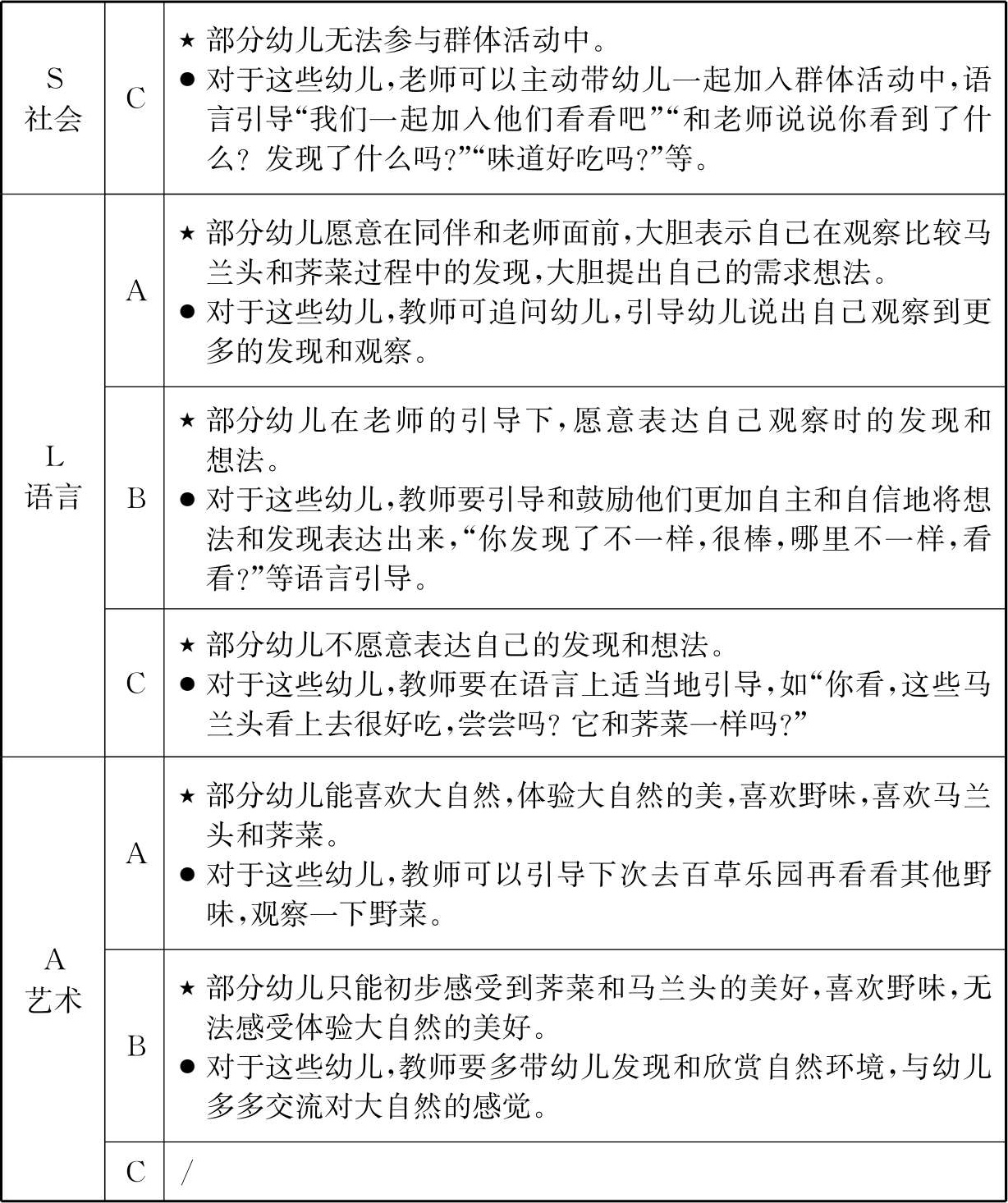 (二)在观察比较野菜过程中,是否愿意大胆表达自己的需求和想法。