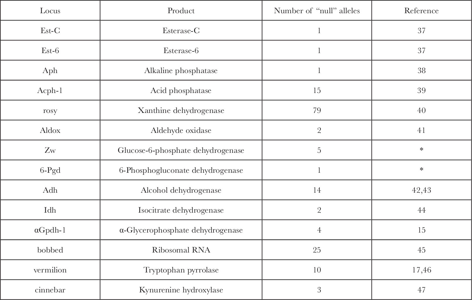 Null alleles at the first eleven loci above were detected by the loss of histochemical stain development on an electrophoretic gel. The sensitivity of this assay detects at least 5% of normal enzyme levels. In several cases ( Acph-1, rosy, Adh, α Gpdh-1 ), analytical enzyme assays with a sensitivity near 0.1% of wild type enzyme levels also failed to detect trace activity in “null” homozygotes. In the two cases where cross reacting material (CRM) was measured ( Acph-1 and ry ) it was also negligible. 中文