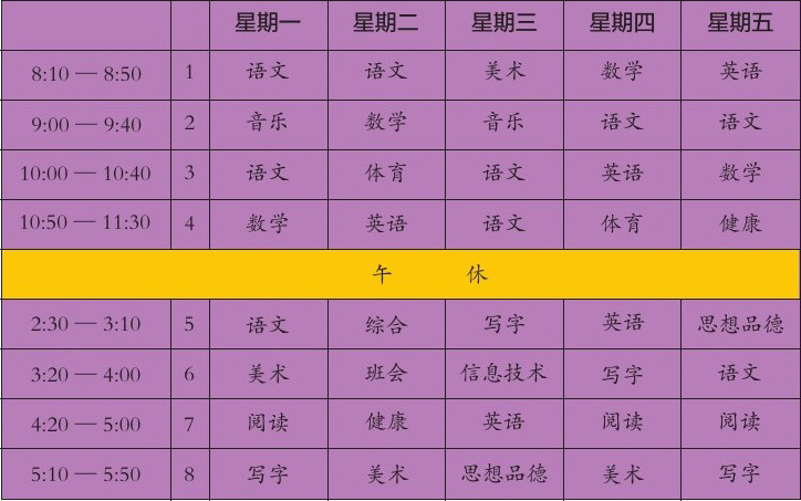 这是适用于整理信息的典型的图解类型,简单地说,也就是分项列举的表格。具体画法是,先画出长方形的外框,然后在第一行和第一列填上相关的项目名称,在其余的表格中填写文字信息。情报型矩阵的好处是可以清晰地传达众多的信息,使原本散乱的信息有条理地呈现出来,很容易检查出是否有遗漏的内容,而且通过矩阵还可以看出信息的分布和信息之间的关系,比如下面的课程表。