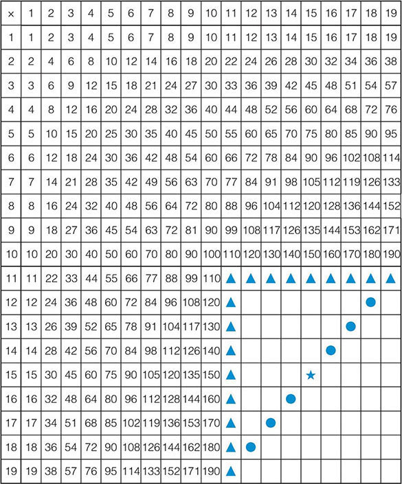 这是一个不完全的19×19段乘法表,请你用这一章学过的简算方法,将此表格补充完整。