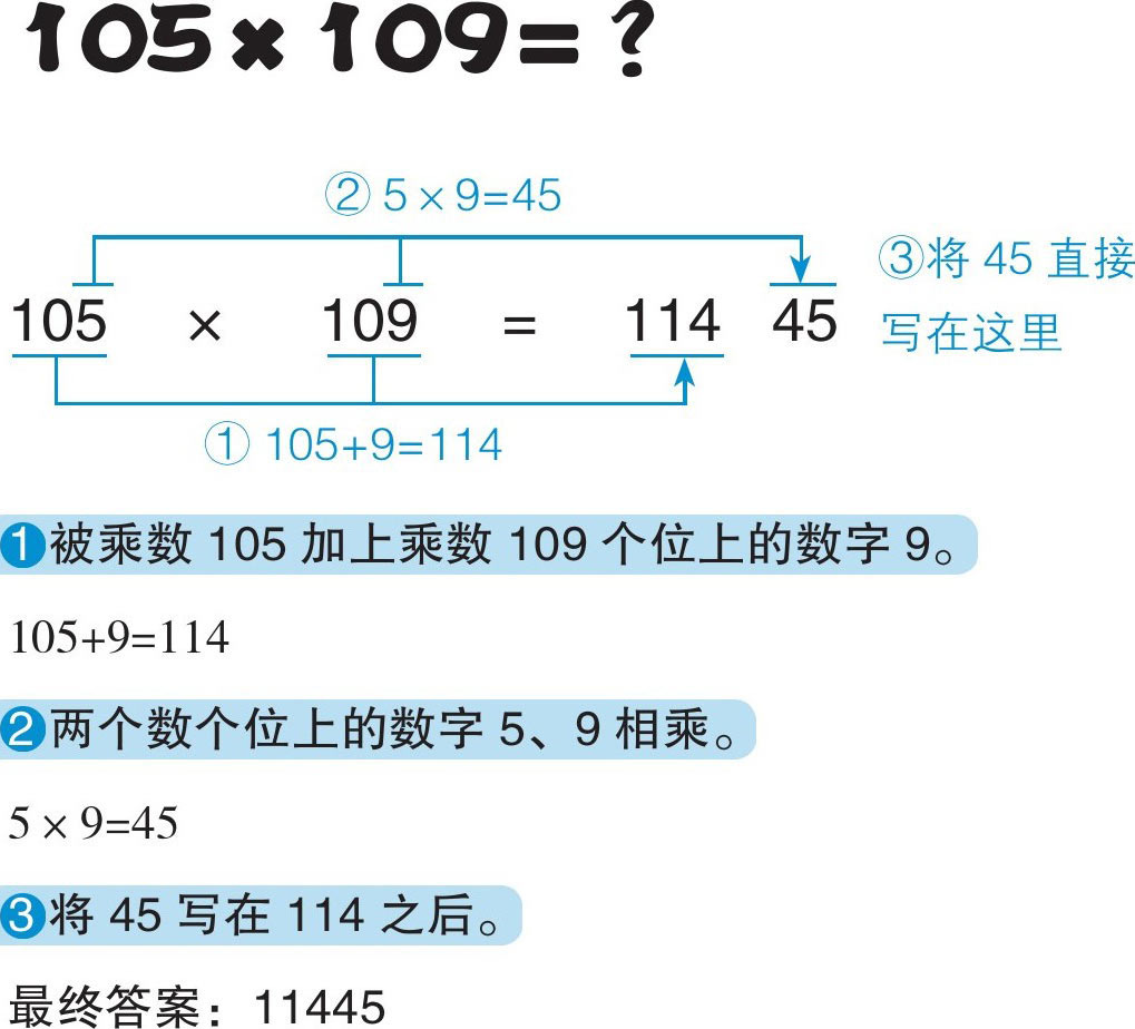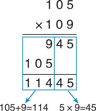 写一写105×109的竖式,你会立刻明白印度数学是如何用心算法替换笔算法的。