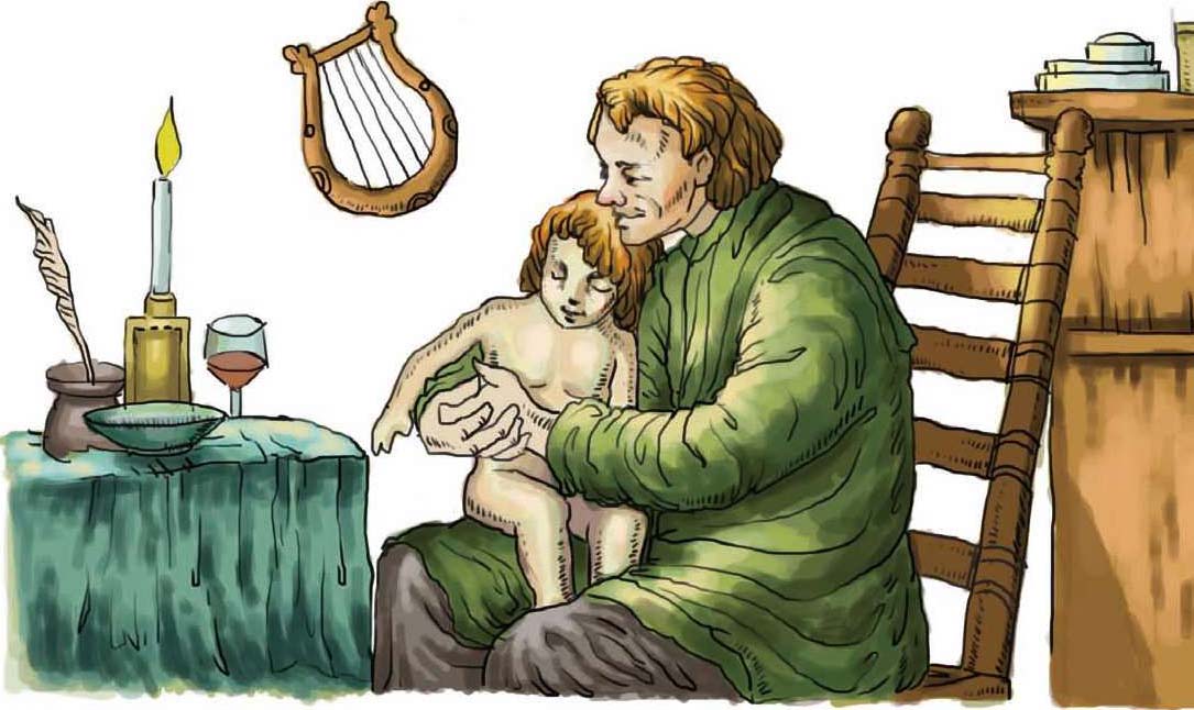 小家伙太不小心了,大冷天还在外面玩。每户人家都锁了门,他冻得快死了还哪儿也去不了,最后就在一位和善的老诗人的家外面哭起来,敲着门。