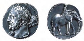正面是迦太基人心中的神迈勒卡特,反面是迦太基人拥有的让