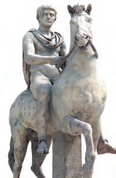 雄健的战马上一个英姿飒爽的年轻罗马男子赤