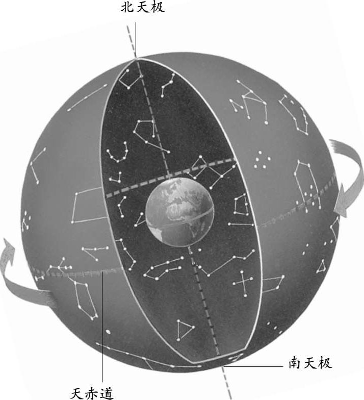 天球是一个假想的旋转的球,以观测者为球心,半径无限大。天球也有天赤道和天极,天球被天赤道分成北天半球和南天半球两部分。天空中所有的物体都可以投影在天球上。天球其实就是意义类似于地球仪的宇宙模型。