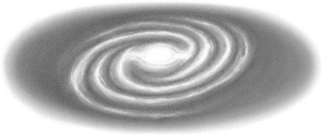 银河系里大多数的恒星集中在一个扁球状的空间范围内,扁球的形状就像一个铁饼。扁球体中间凸出的部分叫“核球”,半径有1万多光年,里面充满了浓厚的星际介质和星云。银河系还有一个扁平的盘,称为银盘。银盘中恒星很密集,还有各种星际介质、星云及星团。银盘的直径有10多万光年,厚度只有几千光年。