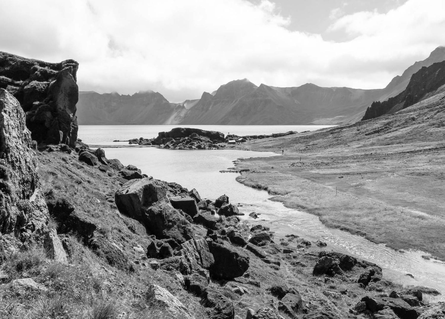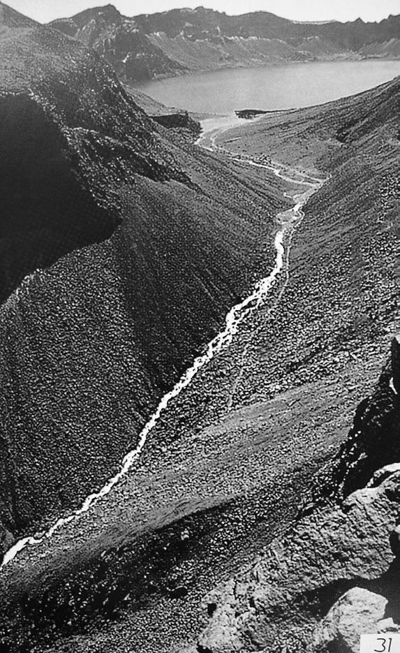 登过长白山的都知道,白头山大瀑布上缘,有一U型峡谷,东为天豁峰,西为龙门峰,两峰夹峙,雄阔峻极。峡谷呈喇叭状,乘槎河飞卷着雪浪,从天池奔涌而出,流径1250米,跌下悬崖,而为白头山大瀑布。乘槎河之名取自张华《博物志》:说有人乘着木筏子航行到天河地界,见了牛郎织女。李商隐有诗:“海客乘槎上紫氛,星娥罢织一相闻。”河畔有唤作牛郎渡、洗儿石、鳌头台等去处。补天石和补天处则位于乘槎河口。从北面看,补天石如同一段光秃秃的城墙,形同影壁,横在池边让人看不到天池。从南面看,补天石如残破的堡垒,守候在松花江源头。从天豁峰半腰俯瞰,补天石状如蝌蚪,律动着活泼的尾巴,仿佛要顺着乘槎河游到人间去。清末安图知县刘建封的《长白山江岗志略》记云: