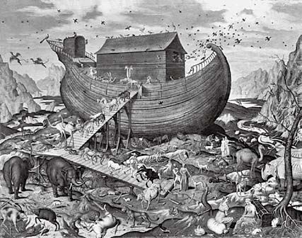 后来的苦难还多着呢。亚当、夏娃生儿育女,人类繁衍得越来越多。他们作恶多端、自相残杀,惹得上帝发了火,决定用一场大洪水来毁灭人类与万物。——大概上帝临时改了主意,他暗中嘱咐一个名叫诺亚的人造了一只“方舟”,以保全性命。