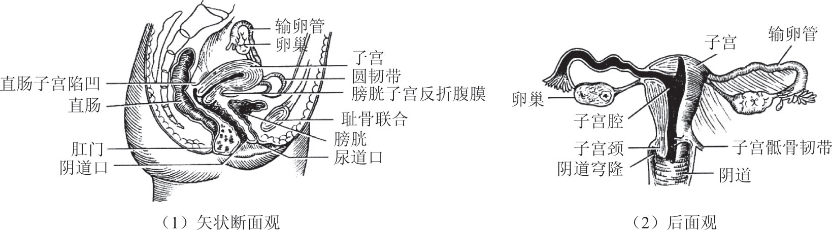 女性内生殖器包括阴道、子宫、输卵管及卵巢,后二者合称子宫附件(图2-2)。