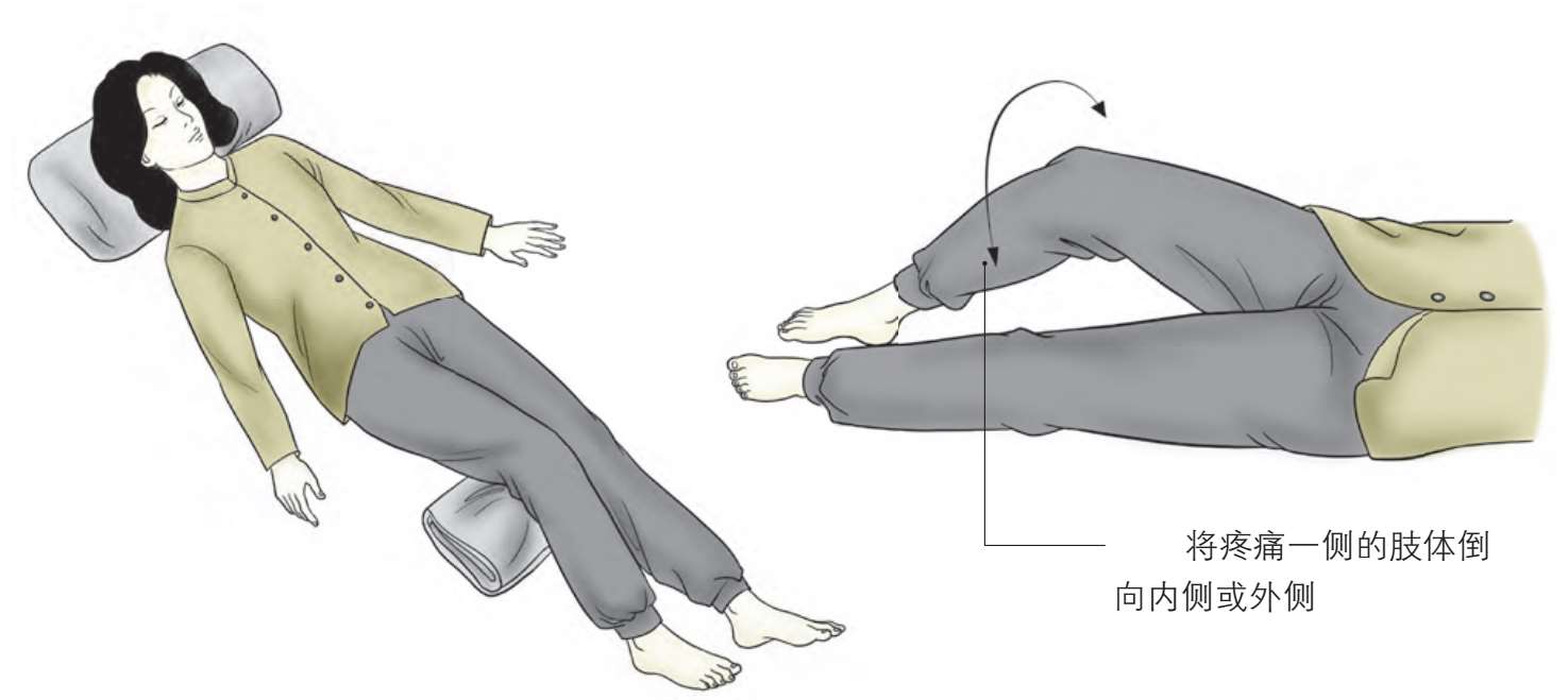 膝盖轻轻弯曲后,疼痛如果变得剧烈,可以把疼痛一侧的肢体立起,倒向外侧或内侧,不痛的那一侧肢体自然弯曲着睡觉。