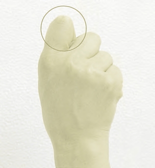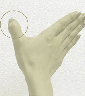 紧握拳头以凸出的关节作指压。此方法在自己徒手做背部指压时,相当适用。将拳头置于背部下方,以自己身体的重量来施力,如能紧握拳头,则指压的手就不会有疼痛的感觉,同样也可将此法应用于颈部的指压上。