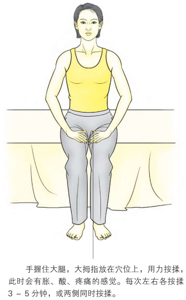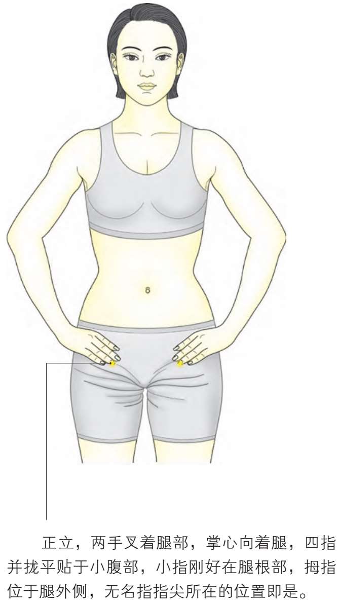 位置:在大腿内侧,当气冲直下2寸,大腿根部、耻骨结节的下方,长收肌的外缘。