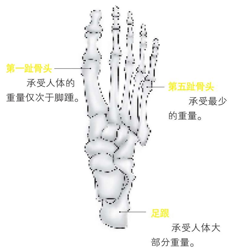 人体足部主要有三个支撑点,它们各自承受着人体不等的重量。