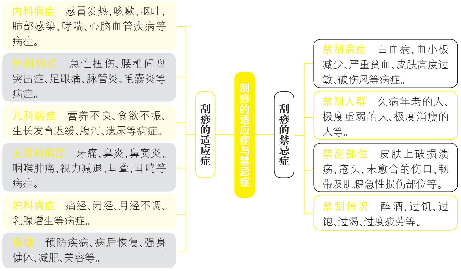 刮痧疗法的治疗范围非常广泛,但是,刮痧疗法也不是万能的,有些病症是不宜进行刮痧的。临床实践已经证明,针灸、按摩疗法适用的病症大都可以用刮痧疗法进行治疗。