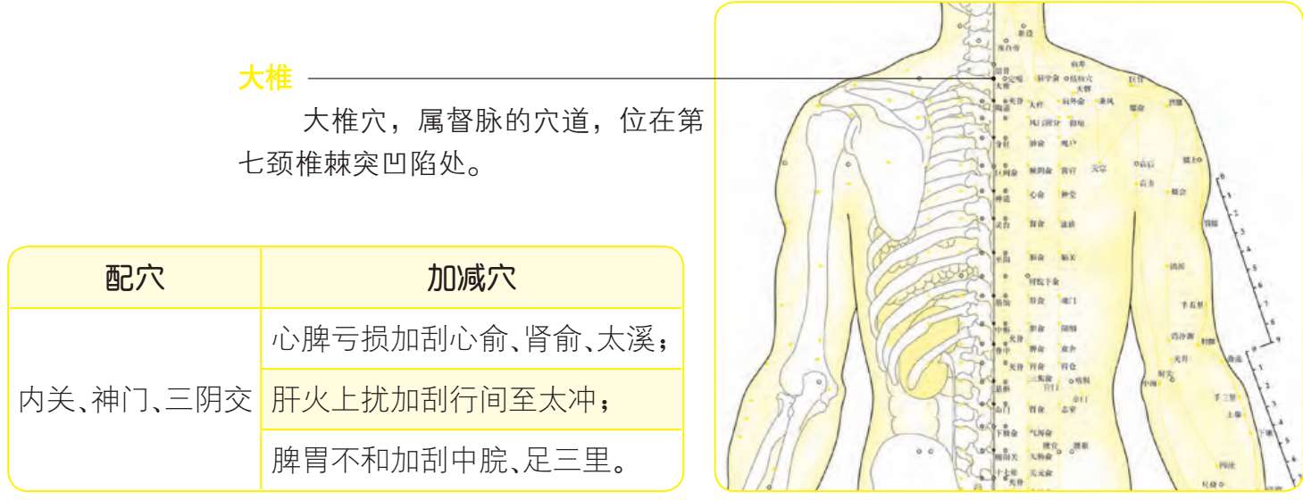 另外失眠还可以选择刮痧疗法进行治疗,主穴为大椎穴,配穴可以选择内关穴、神庭穴和三阴交穴,根据证型的不同还需要选取一些加减穴,心脾亏损加刮心俞穴、肾俞穴、太溪穴;肝火上扰加刮太冲穴;脾胃不和加刮中脘穴、足三里穴。