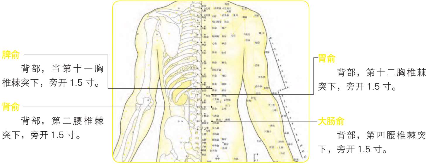 按摩时取脾俞、胃俞、肾俞、大肠俞等穴位,采用轻揉法,以患者感觉有轻度酸胀感为度,每穴每次按摩5分钟以上。
