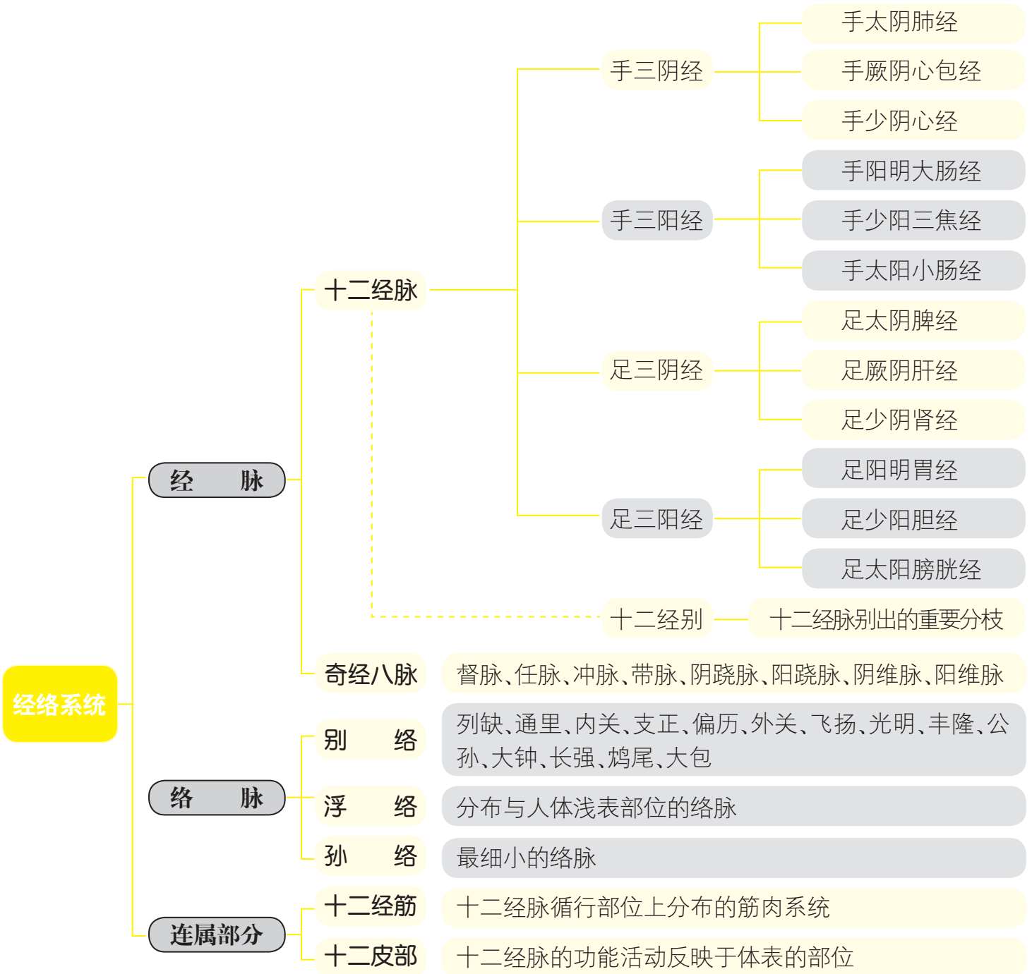 人体的经络系统主要包括十二经脉、奇经八脉、十五别络,以及从十二经脉分出的十二经别。