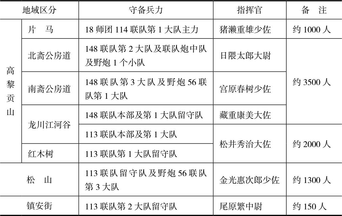 4.第113联队第3大队(萩尾勇少佐)主力5月初由第56步兵团长水上源藏少将