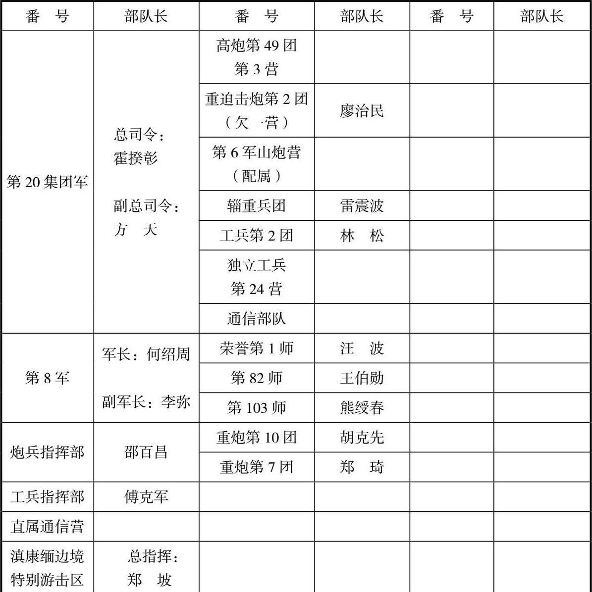 表2 滇西反攻作战中国远征军指挥系统