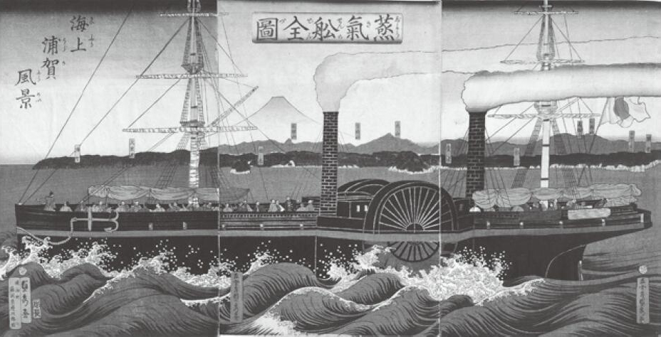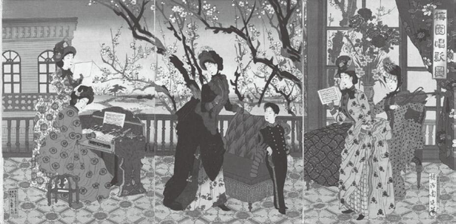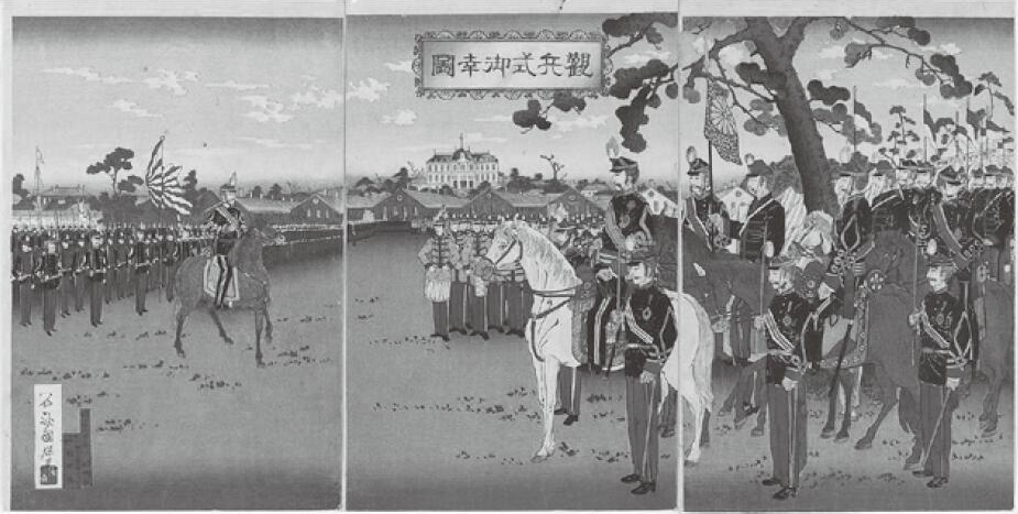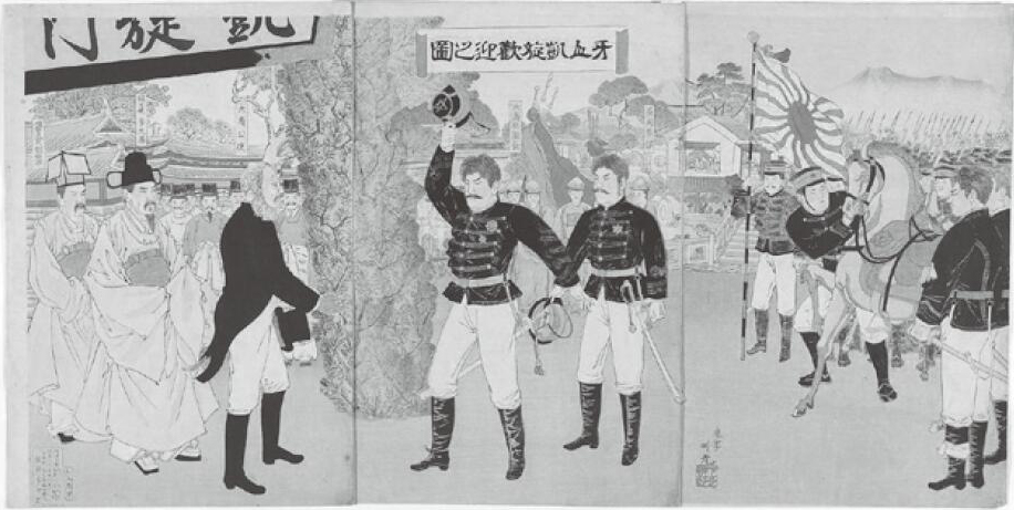 版画《欢迎军队从牙山凯旋》(1894年)明治维新开创了一个政治、经济、社会变革的新纪元,极大地促进了日本的现代化和西化;随之以对外战争赢得西方世界的尊重,并首次以世界主要强国之姿出现在国际舞台。