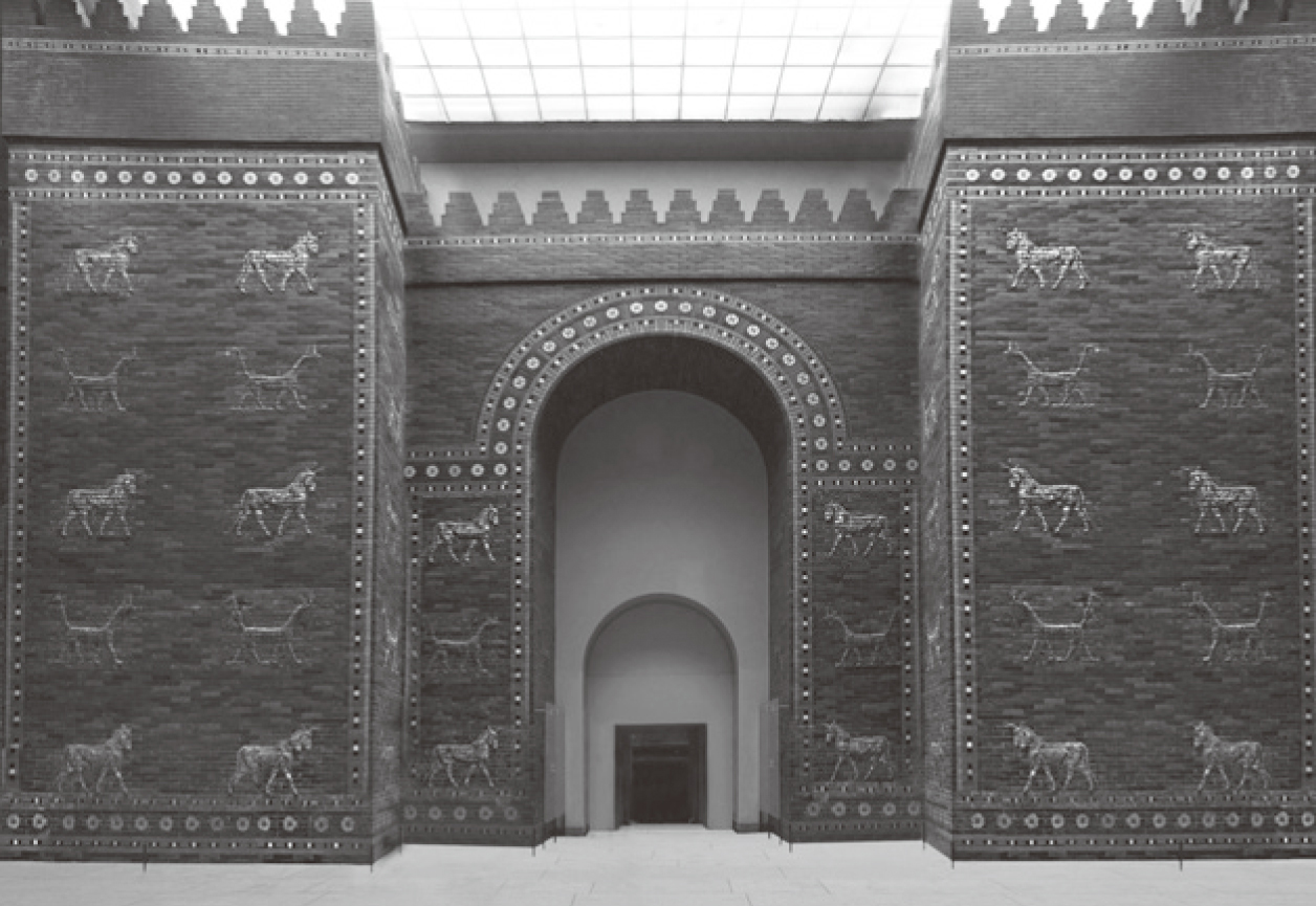 伊什塔尔城门,古巴比伦城主要通道上的巨大城门,用烧制砖砌筑(约公元前575年)。