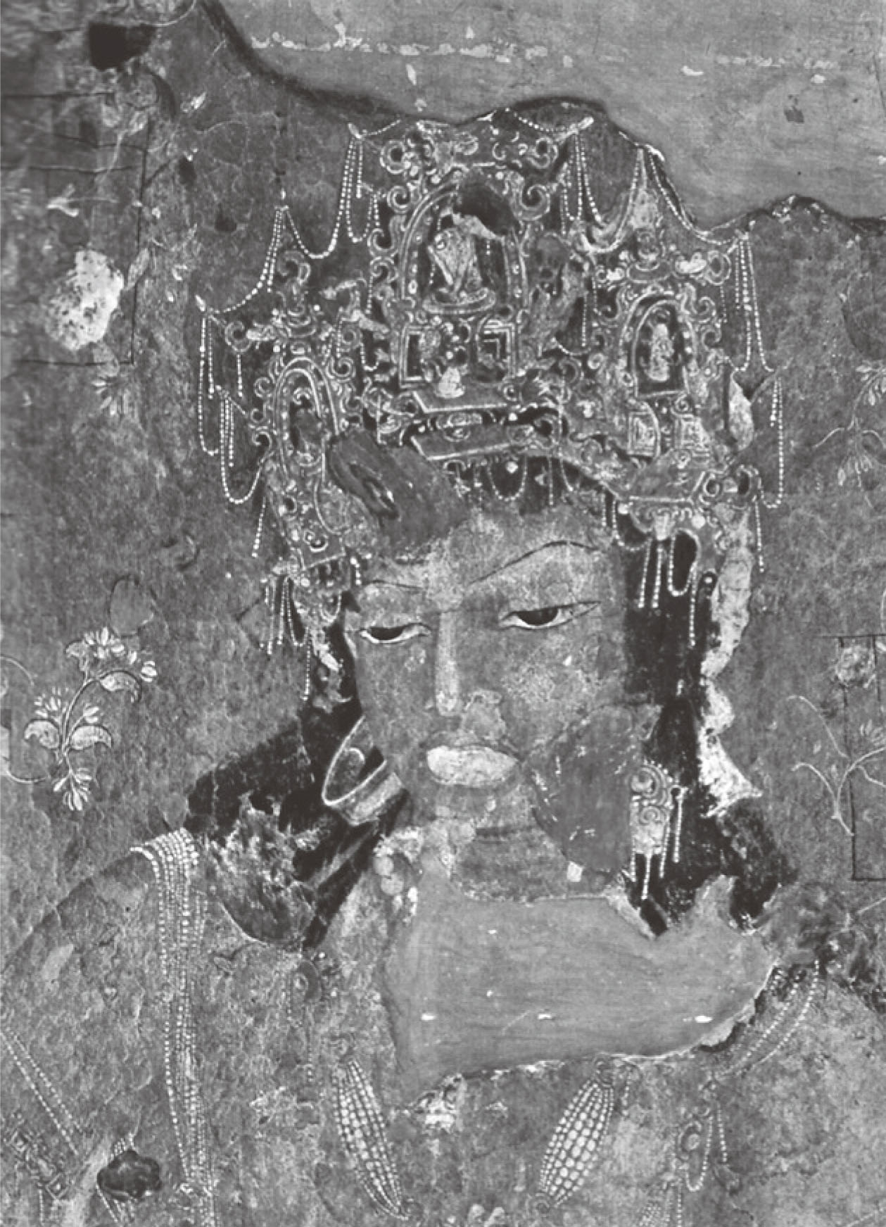 阿旃陀石窟以壁画著称,这是石窟中的一幅菩萨壁画。
