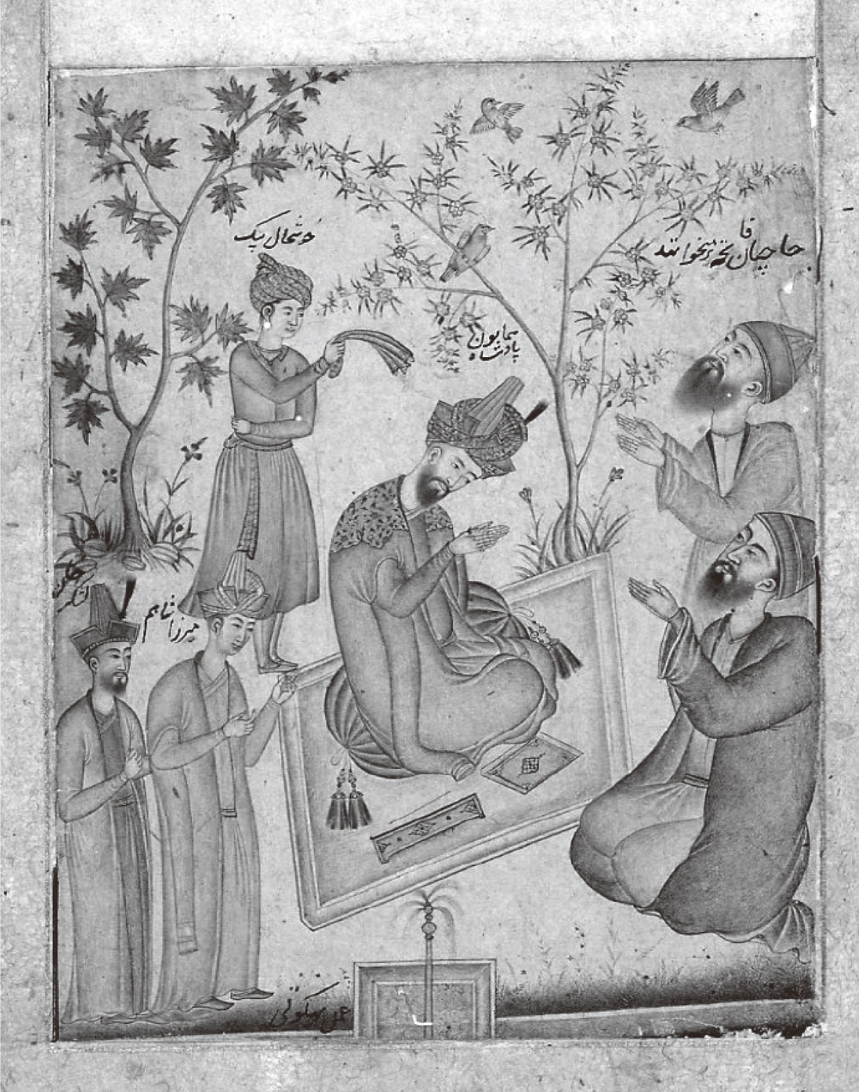 印度第二代莫卧儿皇帝胡马雍正在接受伊斯兰教神秘主义苏菲派的祝福。
