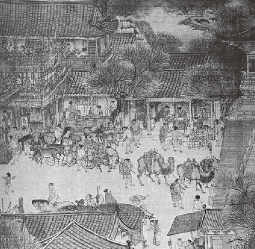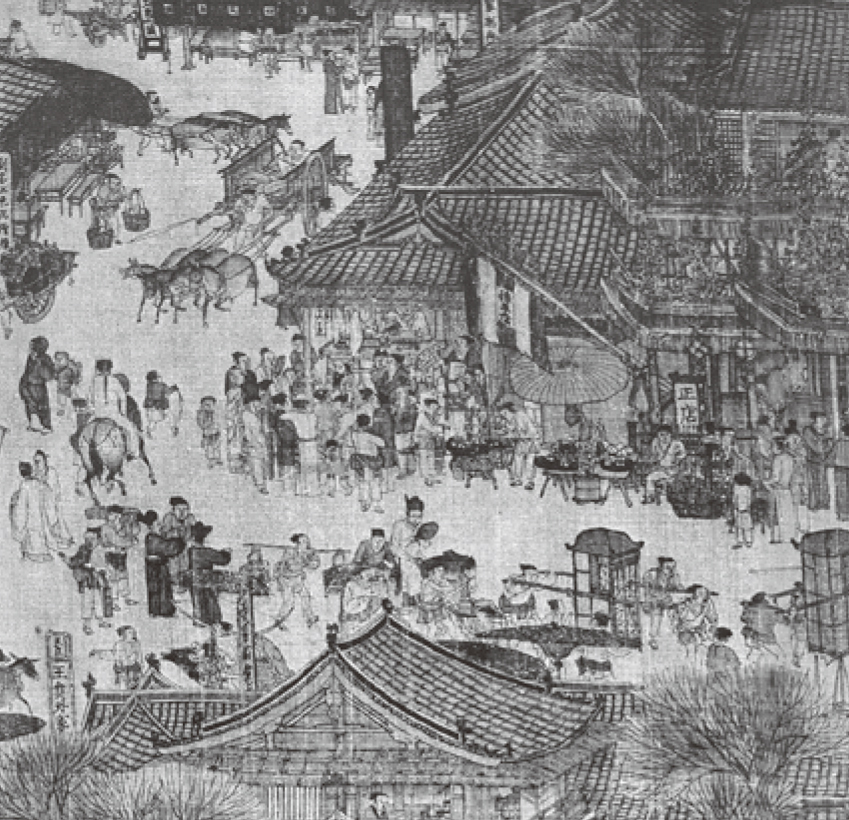 《清明上河图》(局部)(北宋· 张择端),生动地记录了中国12世纪城市生活的面貌。