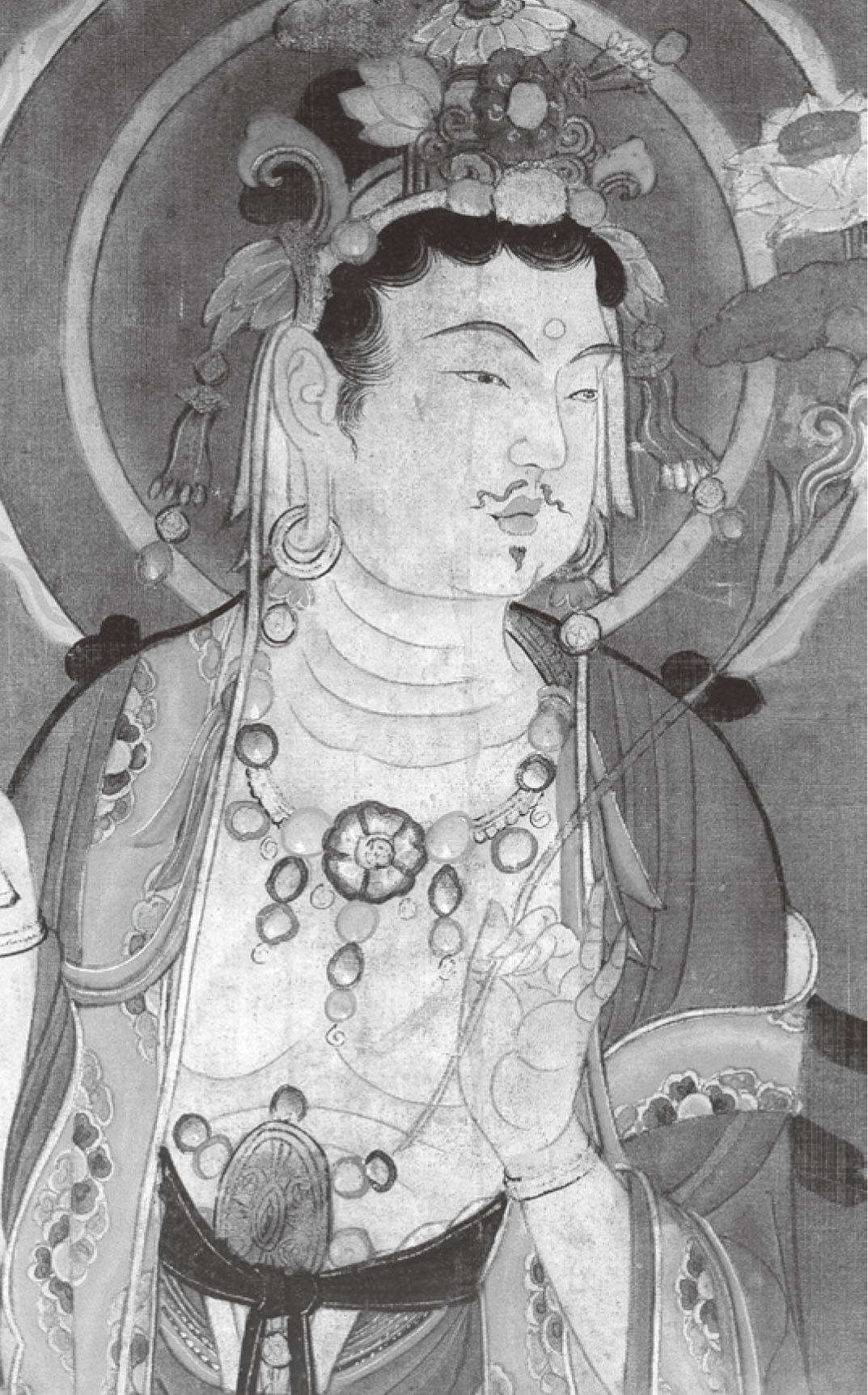 《引路菩萨图》(局部)。“贞观之治”和“开元盛世”时期的唐代经济繁荣、社会富庶,宗教题材作品更世俗化,显示出明显的人情味。