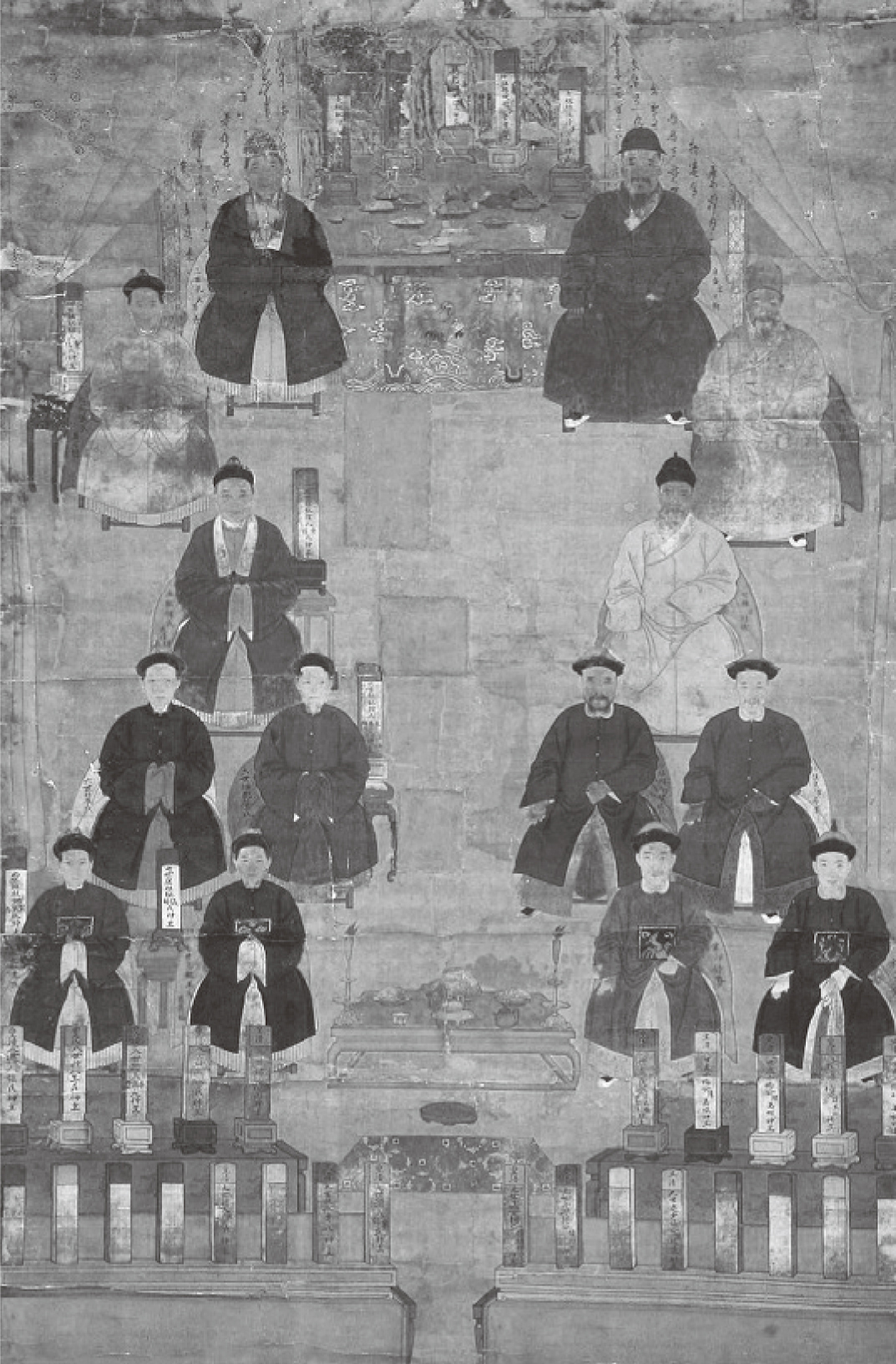 《五代祖宗容像》。中国儒家伦理思想以孝为家庭、社会和谐稳定的基础,强调善事父母、爱利尊长。