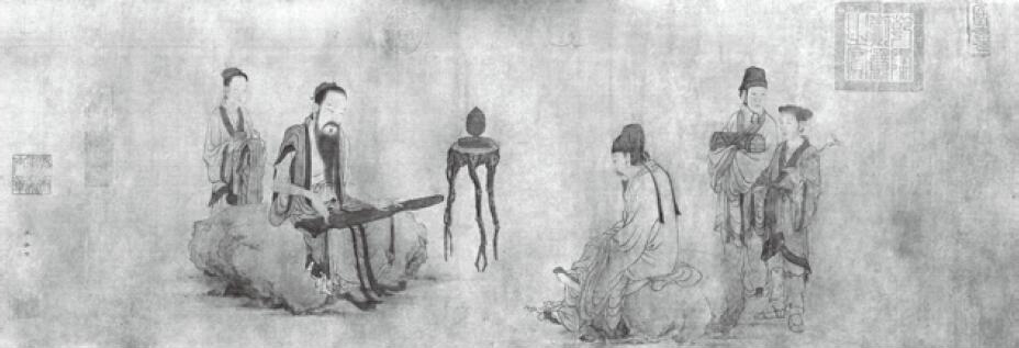 《伯牙鼓琴图》(元· 王振鹏),描绘了伯牙为知音钟子期弹琴的故事,表现的是一种中国人人际交往的理想境界。