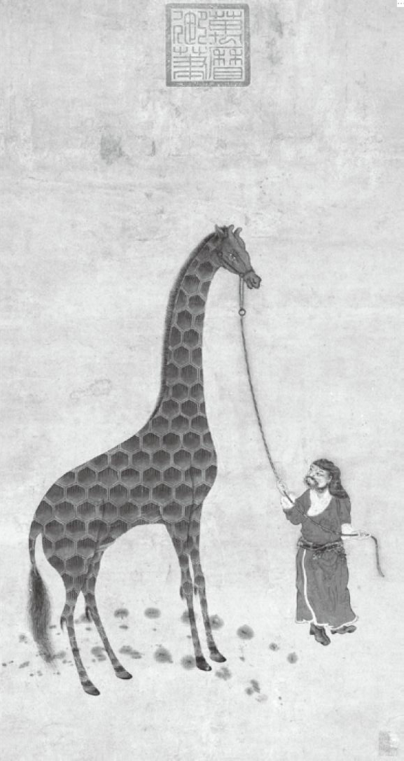 《榜葛剌进麒麟图》(明· 朱瞻基),中国常以中央大国自居,对外交往采藩属国或外国使臣入朝贡献方物的朝贡制度。