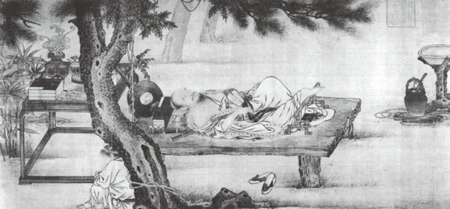 《庄生梦蝶图》(刘贯道)。庄子梦为蝴蝶,醒来仍是庄子,因而说:“不知周之梦为蝴蝶欤?蝴蝶之梦为周欤?”
