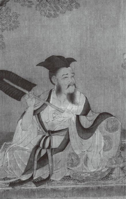 《高逸图》(局部)(孙位),为《竹林七贤图》残卷。此为饮酒放浪,惯作青白眼的阮籍。