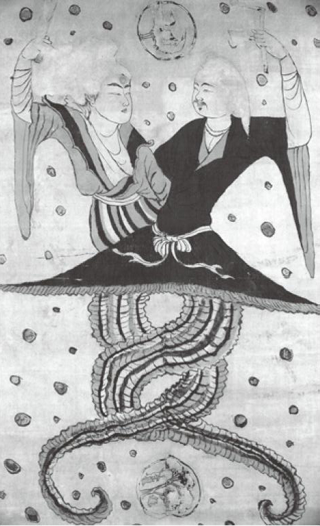 《伏羲女娲图》。伏羲女娲,是中国神话里的人类始祖。