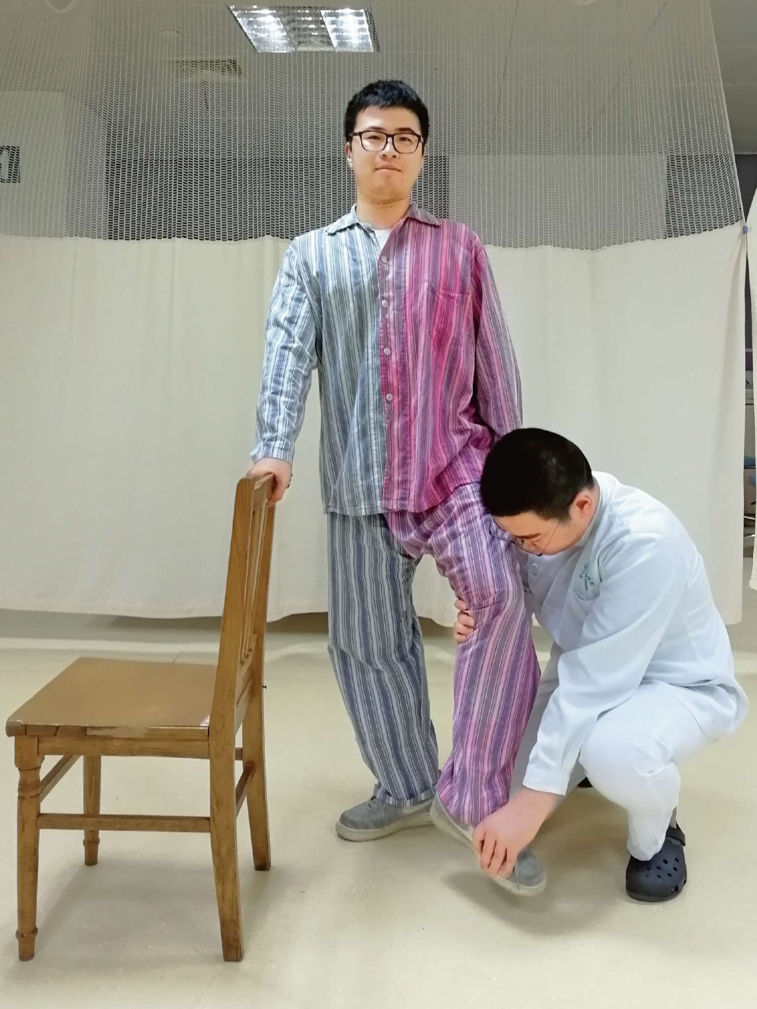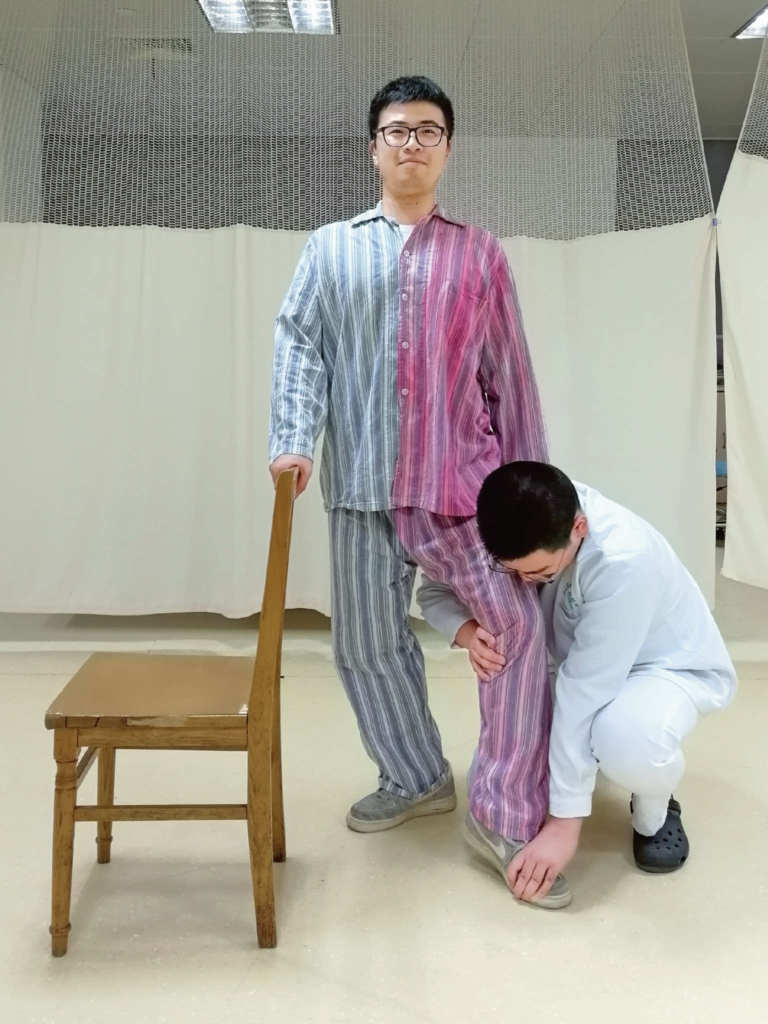 (2)患者上肢进行上提下按反复训练,提高协调性。