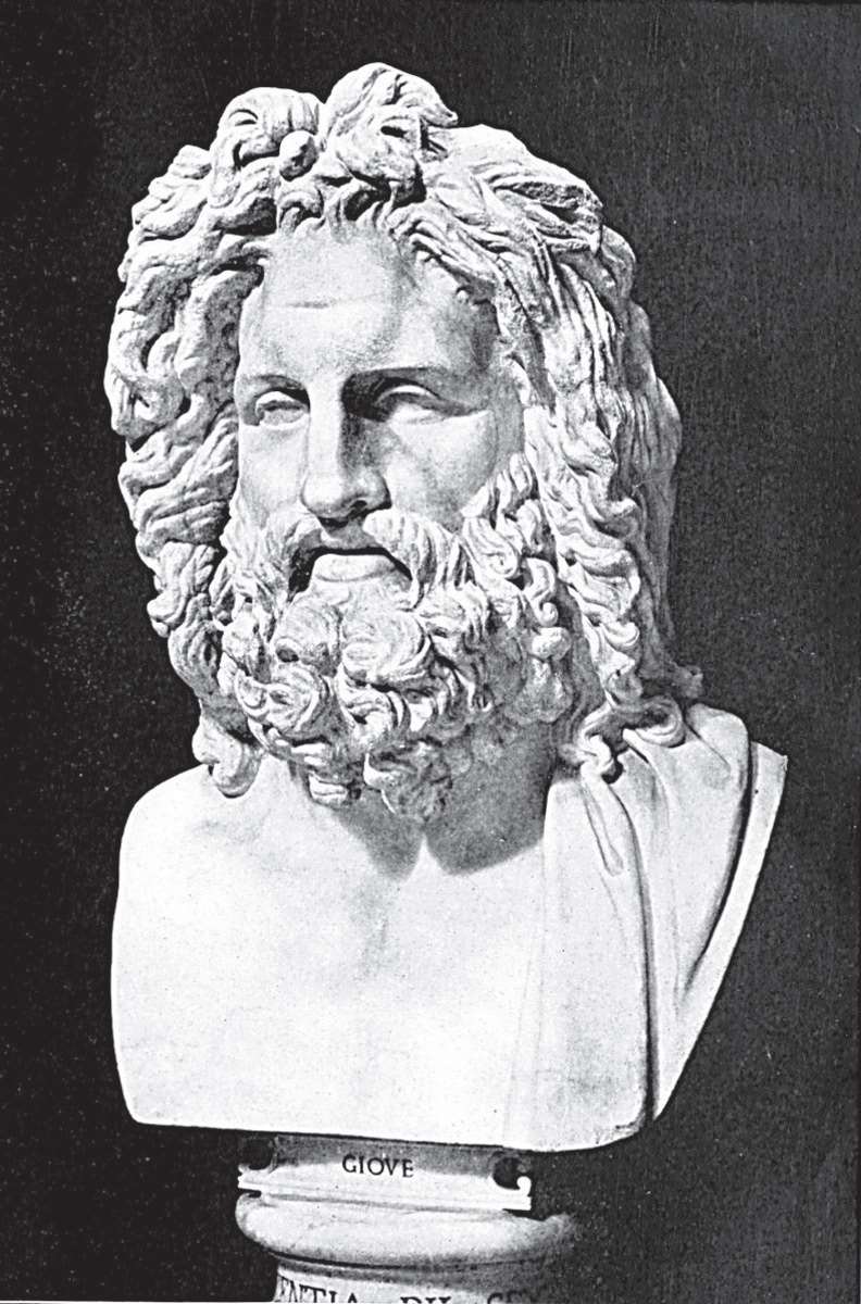 再往左右,到最边上的两个锐角,它们也没有空着。左边可以看见一个人正在杀另一个坐着的人,最左边的狭角上还有一个人躺着,双手抱在胸前,显然已经死了。对着我们的右边,有一个人正在舞动着什么,把另一个人打得单腿跪下了,还有一个人躺在最右边,也像死了。两个角所描绘的也是两个故事,左边的一个是特洛伊陷落的故事,那坐着的人便是特洛伊王普里阿摩斯,右边则是讲宙斯与巨人族战斗的故事,那巨人一族是由天父乌拉诺斯的血化成的,他们前来向宙斯寻仇,但被宙斯打败了。
