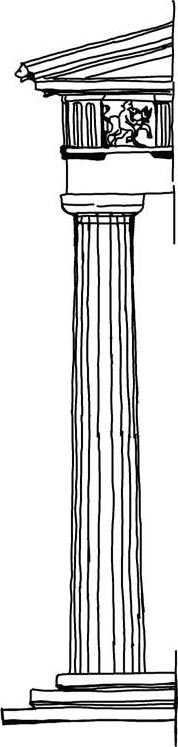 说它朴素,因为它浑身上下除了柱子上一排条纹,没有任何其他装饰,甚至连基座也没有,干干脆脆地立在台阶上,上面托着屋顶的地方也只是一块石头。说它粗壮,因为柱子直径比它的总长小不了多少,其长度大约只有底部直径的四到六倍。这样的形状就像一个膀大腰圆的人一样,看上去当然比较粗壮。