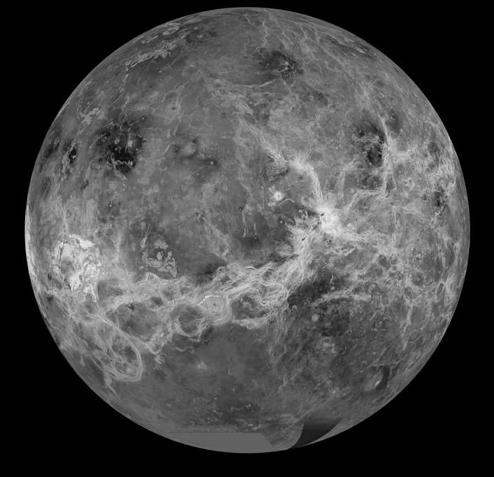 金星是除了太阳和月亮之外,地球的天空中最明亮的天体。它如此明亮的原因很简单——它是距地球最近的行星,最近时只有约4 000万千米。金星绕太阳公转的轨道近乎圆形,公转一周的时间约330天。不过它的自转约需花费240天。而且是“逆向自转”,即自转方向与绕太阳的公转方向相反。金星的直径约为12 000千米,也与地球差不多,其质量、密度、重力加速度等也与地球相近。