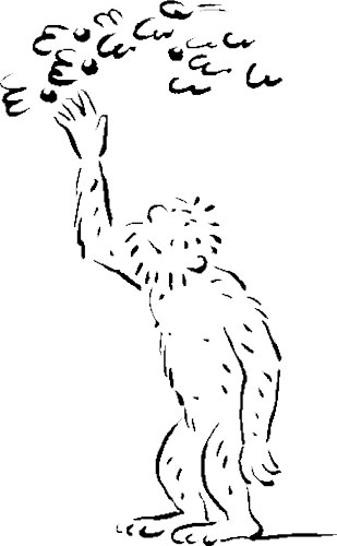 狩猎是他们的第一项共同劳动。他们互相配合,比画着、尖叫着,指出动物的足迹,用上肢甚至整个身体的动作来传达或者接受指令。但在森林里并不是所有猎人都能一下看到自己的同伴,比如草丛太茂密或者夜晚太黑的时候。