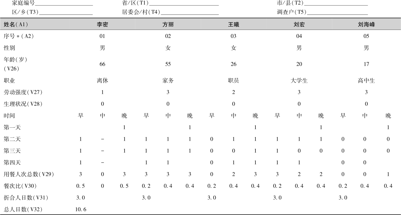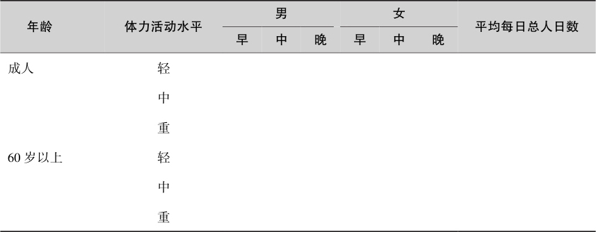 如果被调查单位用餐人员在年龄、劳动强度等方面参差不齐,则应该按照表3-6进行登记。