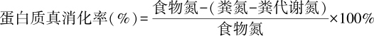 蛋白质消化率是反映摄入蛋白质被消化酶分解程度和消化后的氨基酸和肽被吸收程度的指标。蛋白质消化率越高,被机体吸收的数量越多,其营养价值越高。计算公式如下: