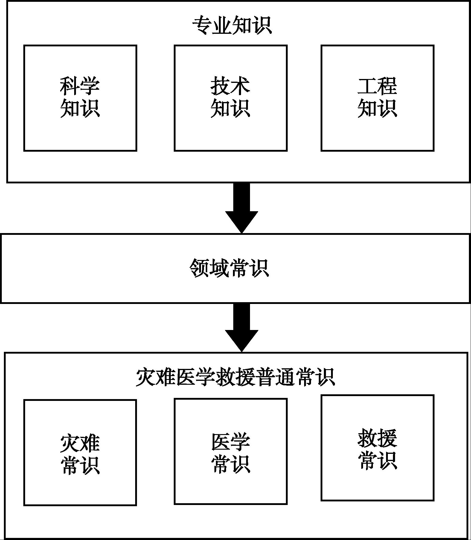 如前所述,常识在数量上大大超过专门知识,它们就像卡尔·波普尔比喻过的蜜蜂酿造出来的原蜜,它们直接来源于自然界的植物。生活在世界各地的蜜蜂生产的原蜜,由于采蜜的地域、蜜源、季节的不同而各具特色。常识如同原蜜,也具有很强的时间性和地域性。比如说沿海渔民,经常要根据海风的变化判断天气情况,而内陆的居民就对天气变化相对不敏感。科学、技术、工程方面的专门知识犹如经加工提炼后的专用蜂产品,数量大大小于常识,使用者的数量也要小于常识使用者的数量。参考袁向东提出的“常识—工程—技术—科学”的网状知识结构,我们绘制如图3-3所示的灾难医学救援系统知识的网状结构图。