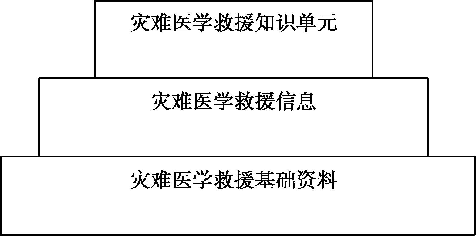 灾难医学救援知识系统是由基础资料、信息、知识单元组成的,三者的关系如图3-1所示。在灾难医学救援知识系统中,存在大量的基础资料,它们位于底层;灾难医学救援信息是经过大脑加工形成的具有确定意义的基础资料集;知识单元则是由信息构建的有结构的信息集。
