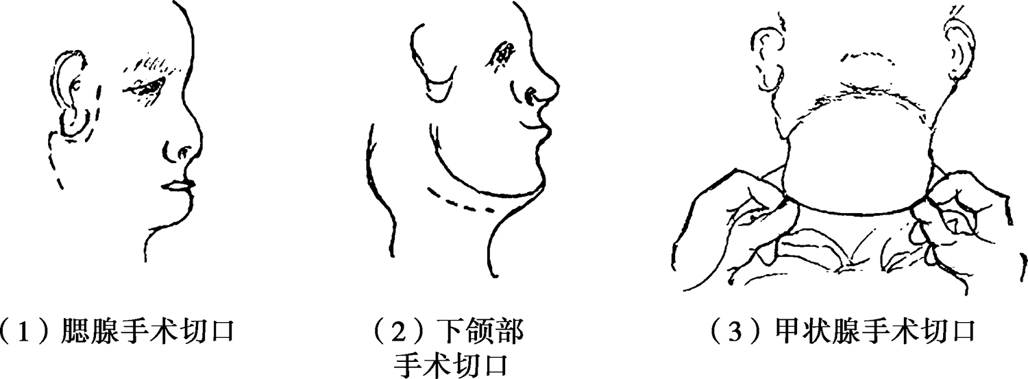 图2-3 头面颈部常见手术切口