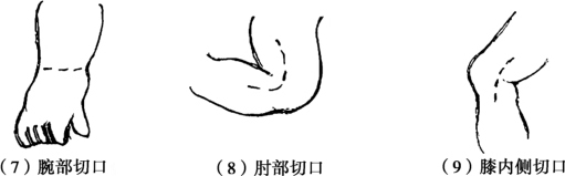 (2)皮肤切开时应尽量与该部位的血管和神经相平行以避免损伤主要的血管神经。