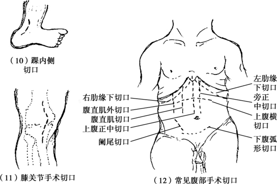 图2-1 常见手术切口